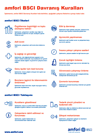 Amfori BSCI davranış kuralları şu alanları kapsar: