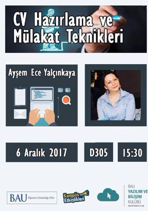 Bahçeşehir Üniversitesi Yazılım ve Bilişim Kulübü ile bu yıl ikincisini düzenlediğimiz uygulamalı seminerimizde Şehir Üniversitesinden, beraber çalıştığım genç, yetenekli ve öğrenmeye/üretmeye sürekli meraklı Cafer YÜKSELOĞLU ile web üzerinden personality tests / kişilik testi uygulamalarının ikincisini gerçekleştirdik (Tests). Ayrıca geleceğin yönetici adaylarının iyi birer iş koçu olmaları için kitaplar hediye ettik. Organizasyonu düzenleyen ekibe misafirperverlikleri için teşekkür ederiz. BAU 06.12.2017