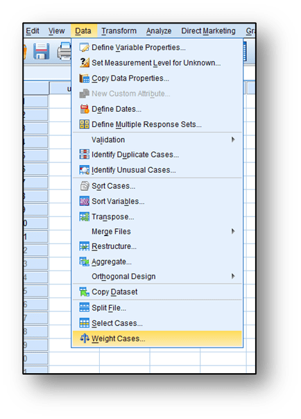 Ki – kare homojenlik testinde ki- kare bağımsızlık testinde olduğu gibi değişkenlerin frekanslara göre ağırlıklandırılması gerekmektedir. Analizden önce bu ağırlıklandırma işlemi yapılmalıdır. Bu işlemi gerçekleştirmek için
