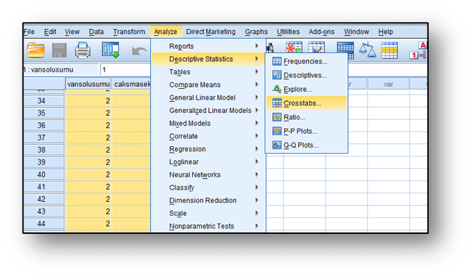 Hipotezi test etmek için IBM SPSS üzerinden izlenecek adımlar aşağıda yer almaktadır: