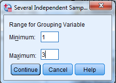 “Define Range” sekmesi tıklanarak bağımsız değişkenin hangi kategorilerinin analize dahil edileceğinin belirlenmesi için bu değişkenin minimum ve maksimum değerleri girilir. Daha sonra “Continue” tıklanır: